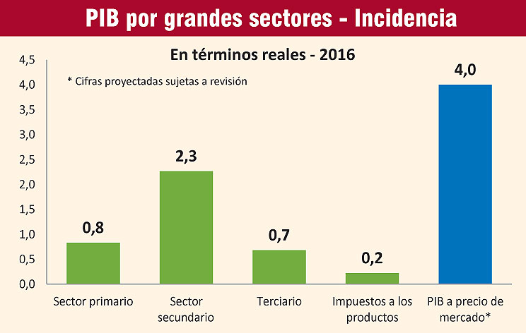 Para la industria se espera una expansión de hasta 4,0%, principalmente por repuntes en la industria metálicos y no metálicos, bebidas, tabaco, molinería y fabricación de azúcar.